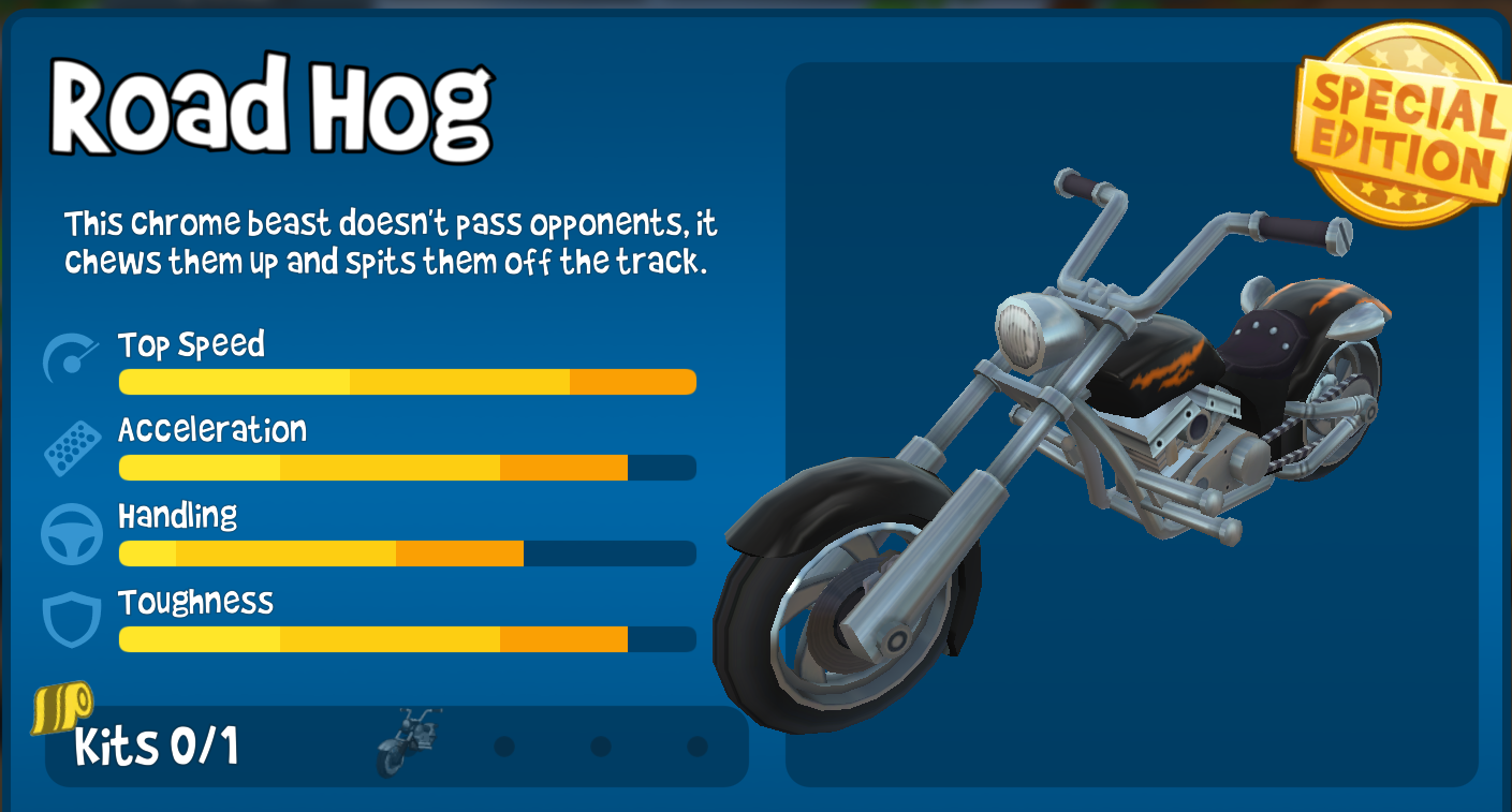 Kick your stands up and twist that throttle — Beach Buggy Racing 2 v2026.04.21 is here, and it's rolling in on two wheels with the brand-new Road Hog chopper motorcycle.